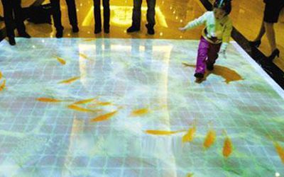 地面互動(dòng)投影是將多媒體影像投影到地面上,并且投影出來(lái)的畫(huà)面能根據(jù)參觀者的腳步路徑而產(chǎn)生對(duì)應(yīng)的變化,這類(lèi)投影在海底世界中比較常見(jiàn),能跟參觀者產(chǎn)生非常好的互動(dòng)效果。